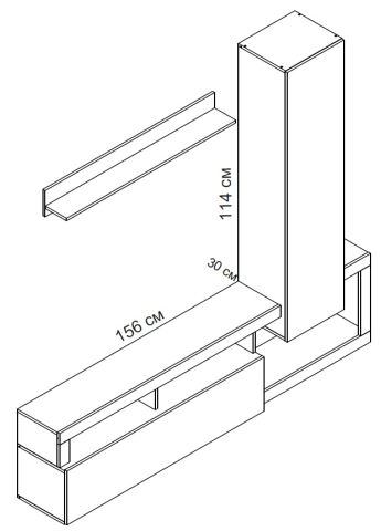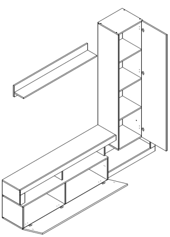 Стенка продается комплектом и состоит из следующих модулей: