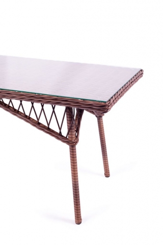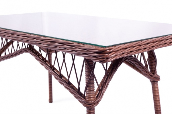 Стол из искусственного ротанга Модус Pradex легко превратит любое открытое пространство в комфортную и стильную зону отдыха. Высококачественная мебель обладает отличными техническими характеристиками: служит много лет, абсолютно не подвержена гниению и коррозии, не боится воды и ультрафиолета. Синтетический ротанг выдерживает t от -70°С до +80°С, он не впитывает влагу и загрязнения, легко моется обычной водой. Крепкий каркас сделан из прочных алюминиевых труб, которые выдерживают значительный вес, не деформируясь и идеально сохраняя форму. Выразительность мебели придает эксклюзивное ручное ажурное плетение в коричневом цвете, с возможностью выполнения в разнообразных цветовых решениях с разными по типу плетениями - G5, GG12, C14, B7, W17, H25, А01, ромбик. Колоритная серия Модус Pradex не оставит без внимания любители уютной английской классики и вечно актуального прованса.