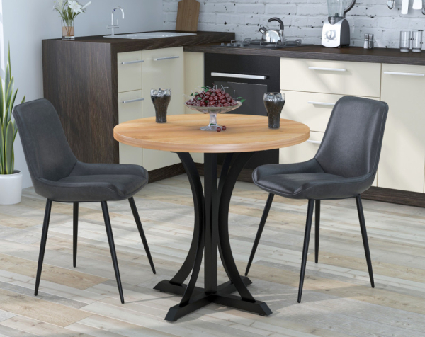 Круглый стол Ральф от компании Loft Design - истинно элегантное решение. Он идеально впишется в вашу кухню, обеденную зону офиса или кафе. Стол не лишён декоративных элементов, которые придают простой, на первый взгляд, форме каркаса, красивый и уникальный вид. Столешница изготовлена из ламинированного ДСП. Диаметр столешницы 800 мм. Толщина столешницы - 36 мм. Опора стола представляет собой цельносварную конструкцию. Металлический каркас изготавливается из трубы профилем 40*40 мм. Размеры каркаса составляют 600*600 мм с высотой 720 мм. Опоры оснащены регулируемыми ножками на шарнире, благодаря чему стол можно выставить на неровном полу. Обратите внимание, что данный стол надо защищать длительного воздействия жидкости или высоких температур. Рекомендуем использовать подставки или подложки под предметы. Внимание: Стулья не входят в комплект со столом!