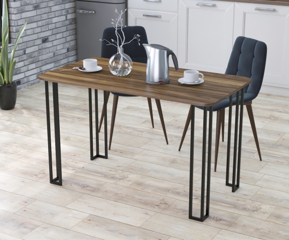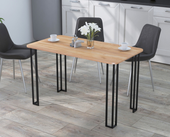Обеденный стол Сквер 120-65 от компании Loft Design выполнен в стиле Лофт: оригинальные металлические ножки сочетаются со столешницей с красивой текстурой имитирующей дорогие породы дерева. Этот стол подойдет для любой современной кухни. Прямые ножки стола выполненные из тонких труб выглядят солидно и в то же время прозрачно и привлекают на себя лишнее внимание. Это современное виденье классического дизайна с уклоном на популярный сейчас стиль Лофт. Металлические ножки изготовлены из трубы профилем 15*15 мм. Вверху ножек приварена широкая пластина толщиной 3 мм для обеспечения устойчивости конструкции. Ножки окрашены с помощью порошковой покраски, которая устойчива к внешним воздействиям. Стол комплектуется войлочными накладками для предотвращения повреждения поверхности пола. Благодаря своей конструкции ножки выглядят легко и прозрачно и в то же время являются надёжной опорой стола. Столешница изготовлена из ламинированного ДСП. Толщина столешницы - 18 мм. По периметру наклеена кромка из ПВХ толщиной 2 мм. Размер столешницы 120-65 см. Углы столешницы закругленные (радиус скругления 70 мм). Обратите внимание, что данный стол надо защищать длительного воздействия жидкости или высоких температур. Рекомендуем использовать подставки или подложки под предметы. Внимание: Стулья не входят в комплект со столом!