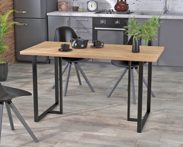 Обеденный стол Тетра от компании Loft Design выполнен в стиле Лофт в самом классическом понимании: массивные металлические ножки сочетаются с массивной столешницей с красивой текстурой имитирующей дорогие породы дерева. Этот стол подойдет для любой современной кухни или офисной обеденной зоны. Металлические ножки изготовлены из трубы профилем 40*20 мм. Опоры окрашены с помощью порошковой покраски, которая устойчива к внешним воздействиям. Конструкция цельносварных металлических опор обеспечивает 100% устойчивость столу. Ножки комплектуется войлочными накладками для предотвращения повреждения поверхности пола. Габариты опоры: ширина - 600 мм, глубина - 200 мм, высота - 720 мм. Столешница изготовлена из сдвоенного ламинированного ДСП. Толщина столешницы - 36 мм. По периметру наклеена кромка из ПВХ толщиной 2 мм со скругленными краями. Размер столешницы 138*70 см. Обратите внимание, что данный стол надо защищать длительного воздействия жидкости или высоких температур. Рекомендуем использовать подставки или подложки под предметы.
