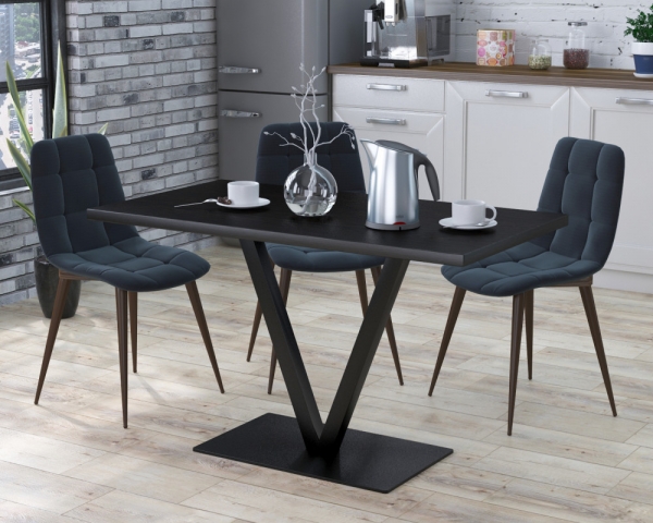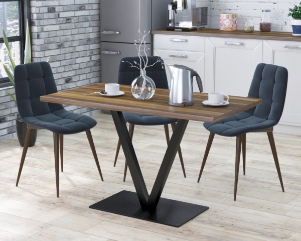 Обеденный стол Винсент - воплощение элегантности и стиля. Он притягивает внимание своими металлическими ножками, которые расположены в уникальной композиции, придающей столу грациозность. Данный стол объединяет прекрасный дизайн и функциональность, делая его идеальным выбором для современных кухонь и кафе. Металлическая опора выполнена из квадратной трубы с профилем 60х60 мм, имеют 2 широкие пластины сверху для крепления столешницы. Снизу опоры имеется массивное основание размером 700х400 мм и толщиной 6 мм. Опора окрашена с помощью порошковой покраски, которая устойчива к внешним воздействиям. Столешница изготовлена из ламинированного ДСП размером 120 см на 65 см. Толщина столешницы - 36 мм. Обратите внимание, что данный стол надо защищать длительного воздействия жидкости или высоких температур. Рекомендуем использовать подставки или подложки под предметы. Внимание: Стулья не входят в комплект со столом.