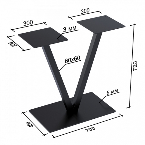 металлические трубы профилем 60x60 мм и основание размером 700х400 мм и толщиной 6 мм |