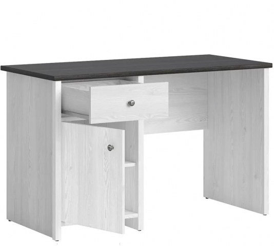 стол содержит один выдвижной ящик и одно закрытое отделение с полкой внутри |