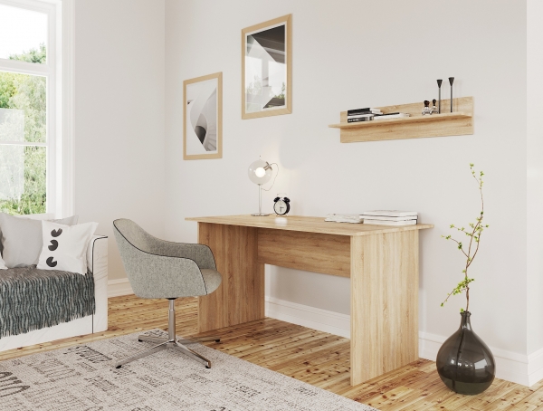 Письменный стол Т1 / 140 дуб сонома Doros современного дизайна, освежит интерьер домашнего кабинета и офиса. Стол содержит широкую столешницу, что позволит свободно разместить на нем ноутбук или компьютер и останется достаточно места для выполнения уроков или другой работы. Стол внесет комфорт и уют, сохранив чистоту и порядок не только рабочей зоны, но и всей комнаты.