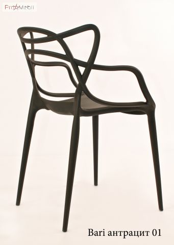 Стул Bari антрацит 01 Onder Mebli - удобный стул со спинкой. Изготовлен в Малайзии. Представлен в разных цветах. Стильный, оригинальный стул с изогнутой спинкой. Материал изделия – полипропилен. Стул пластиковый Bari (Бари) предназначен для использования в жилом интерьере, даче, открытых площадках, кафе, террасах. Следует беречь изделие от постоянных прямых солнечных лучей, так как цвет может потускнеть. Данная модель штабелируется. Максимальная нагрузка до 140 кг.