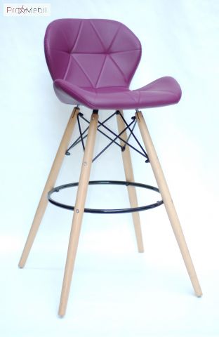 Стул барный Invar Bar ЭК пурпурный 61 Onder Mebli выделяется своей изогнутой формой сиденья и спинки, которая оббита эко-кожей пурпурного цвета. Корпус и ножки - деревянные. Хороший выбор барного стула, чтобы украсить и дополнить ваш интерьер.