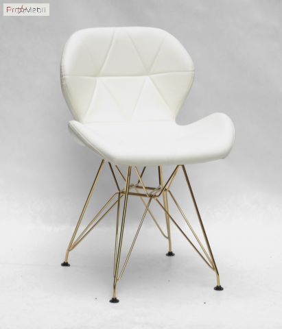 Стул Invar GD-ML ЭкоКожа молочный 56 Onder Mebli - удобный стул со спинкой. Изготовлен в Малайзии. Выполняется в разных цветах. Стильный, оригинальный стул с ножками золотистого цвета, мягкой спинкой и сиденьем из кожзама.