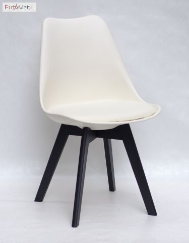 Стул Milan BK молочный 56 Onder Mebli - удобный стул со спинкой. Изготовлен в Малайзии. Выполняется в разных цветах. Стильный, оригинальный стул с удобной спинкой, мягким сиденьем из кожзама. Ножки - деревянные, черного цвета.