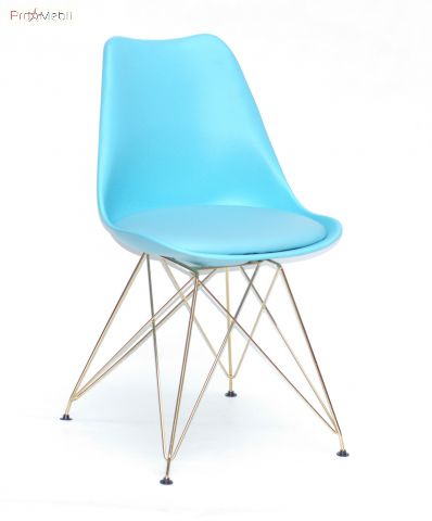 Стул Milan GD-ML голубой 52 Onder Mebli - удобный стул со спинкой. Изготовлен в Малайзии. Выполняется в разных цветах. Стильный, оригинальный стул с удобной спинкой, мягким сиденьем из кожзама. Ножки - металлические, золотистого цвета соединенные между собой прутьями.