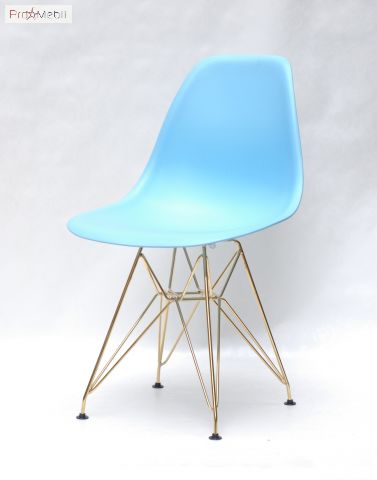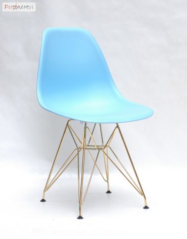 Стул Nik GD-ML голубой 52 Onder Mebli - современный, дизайнерский удобный стул со спинкой. Изготовлен в Малайзии. Выполняется в разных цветах. Стильный, оригинальный стул с ножками соединенные прутьями золотистого цвета.