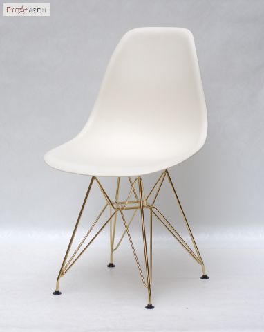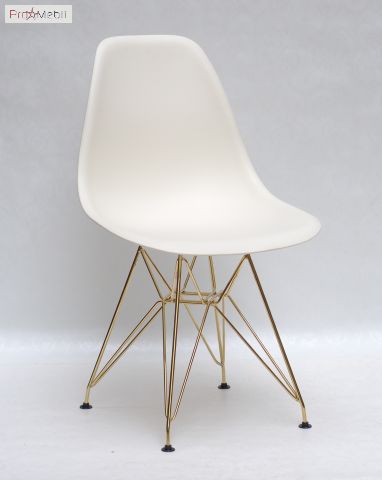 Стул Nik GD-ML молочный 56 Onder Mebli - современный, дизайнерский удобный стул со спинкой. Изготовлен в Малайзии. Выполняется в разных цветах. Стильный, оригинальный стул с ножками соединенные прутьями золотистого цвета.