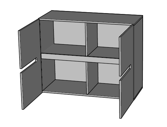 комод имеет две дверки, внутренне пространство за которыми разделено полочкой |