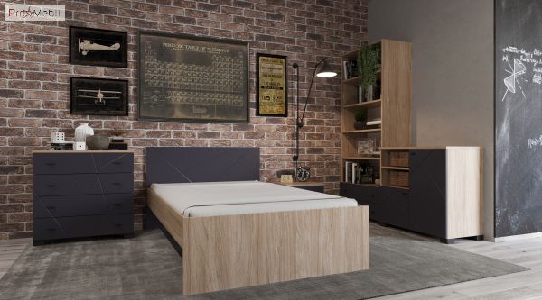 Тумба большая Х-19 X-Скаут Санти удачно совмещает в себе функциональность и модный стильный дизайн и предназначена для обустройства изысканной гостиной, столовой, спальни или детской. Состоит из трех закрытых отделений и ниш. Просторная и идеально гладкая поверхность столешницы является идеальной основой для интересных украшений или фоторамок. Корпус изготавливается из высококачественного ламинированной ДСП толщиной 18 мм немецкого концерна «Kronospan», фасады - МДФ c фрезеровкой толщиной 16 мм производства Италия. Торцы деталей оклеиваются ПВХ-кромкой фирмы Rehau. Мебель X-Скаут Santi выпускается в контрастном сочетании «графитовых матовых» фасадов и корпуса «дуб каменный» с природной структурой дерева. Характерными особенностями мебели X-Skaut Santi являются современный дизайн, простые геометрические формы модулей, элегантная фрезеровка на фасадах, стильные продолговатые пластиковые ручки, фирменные комплектующие. Мебель X-Скаут Санти это способ уникальной аранжировки интерьера детской комнаты, в которой Вы создадите уникальный, наполненный легкостью лофт-интерьер.
