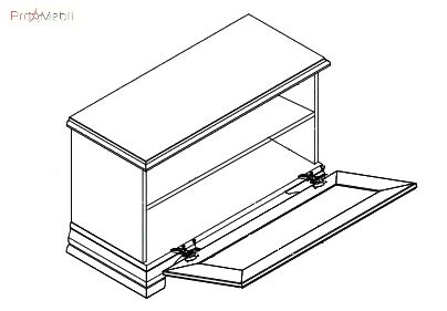 тумба содержит одну откидную дверь, за которой расположено отделение с полкой |