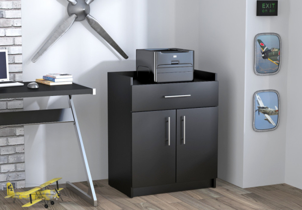 Тумба под принтер L-640 от производителя Loft Design – универсальная и практичная модель. Она может использоваться как тумба под принтер, под кофе-машину или просто для канцелярских товаров. Во вместительный ящик можно сложить мелкие канцтовары: ручки, тетради блокноты, файлы, а в нижние отделения положить коробки с офисной бумагой, папки с файлами и прочие крупные предметы. В случае использования тумбы в качестве подставки под кофе-машину, в верхнем ящике обычно прячут кружки, банки с кофе, чай, тарелки и ложки. Тумба выполнена из премиального ЛДСП серии Wood толщиной листа 18 мм. Края ЛДСП проклеены кромкой 0,5 и 2 мм на немецком оборудовании, использование которого позволяет качественно клеить кромку, тем самым увеличивая срок эксплуатации изделия. В данной модели используются качественные металлические ручки 128 мм. К нижней части тумбы для принтера крепятся пластиковые прокладки для защиты напольного покрытия. Выдвижной ящик крепится с помощью роликовых направляющих 35 см класса Люкс. Дверцы крепятся на металлические петли. Аккуратная и компактная, тумба для принтера отлично впишется в дизайн современного офиса. Выдвижной ящик имеет размер на всю ширину тумбы. В отделении, закрытом двумя дверцами присутствует полочка, разделяющая внутреннее пространство тумбы на две зоны. Полка может устанавливаться в двух положениях: посредине пространства или ближе к верху.