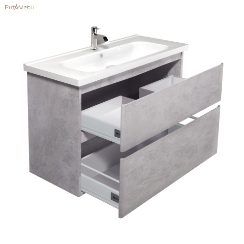 Тумба для ванной с умывальником 100-U Палермо Loft Мойдодыр прекрасно дополнит интерьер ванной комнаты и поможет рационально использовать пространство под раковиной и улучшает эстетичный вид в целом. Тумба комплектуется керамическим умывальником «Ideal-100», производитель «Creavit», Турция и имеет два выдвижных ящика, что позволит удобно разложить всевозможные гели, крема, полотенца и прочие принадлежности, спрятать бытовую химию, которая не должна быть на виду. Корпус и фасадные части изготовлены из качественного МДФ Kronospan толщиной 16 мм и 19 мм, поверхности покрыты ПВХ-пленкой в трендовом цвете - бетон светлый. Характерными особенностями мебели Палермо Лофт Мойдодыр являются стильный и современный дизайн; трендовое цветовое решение; гладкая округленность углов; тонкие линии и плавные формы; отсутствие ручек, их роль выполняют фрезерованные на фасаде выемки; два варианта размещения тумб, подвесной и напольный с хромированными ножками; фирменные комплектующие: направляющие полного выдвижения с доводчиком «Linken Box Perfect», которые обеспечивают плавное и мягкое закрывание. Палермо Loft Мойдодыр станет интересным предложением для любителей современного интерьеров в стиле лофт.