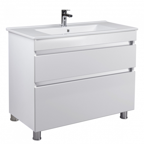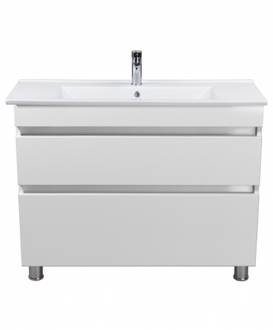 Тумба для ванной с умывальником 100-U Su MoonShine Мойдодыр прекрасно дополнит интерьер ванной комнаты и поможет рационально использовать пространство под раковиной и улучшает эстетичный вид в целом. Тумба комплектуется керамическим умывальником «Su-100», производитель «Creavit», Турция и имеет два выдвижных ящика, которые позволят удобно разложить всевозможные гели, кремы, полотенца и прочие принадлежности, спрятать бытовую химию, которая не должна быть на виду. Главной особенностью серии являются приятный дизайн; отсутствие ручек, их роль выполняют фрезерованные на фасаде выемки; напольный монтаж с хромированными ножками; фирменные комплектующие: направляющие Hettich, которые обеспечивают плавное и мягкое закрывание. Благодаря мебели MoonShine Мойдодыр Вы можете спроектировать ванную комнату без всяких усилий!
