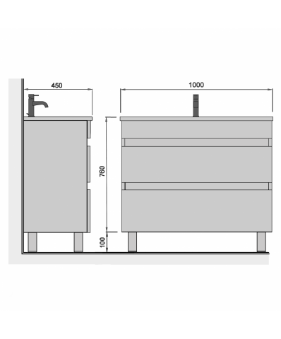 Технические характеристики Тумба для ванной с умывальником 100-U Su MoonShine Мойдодыр