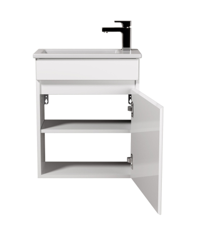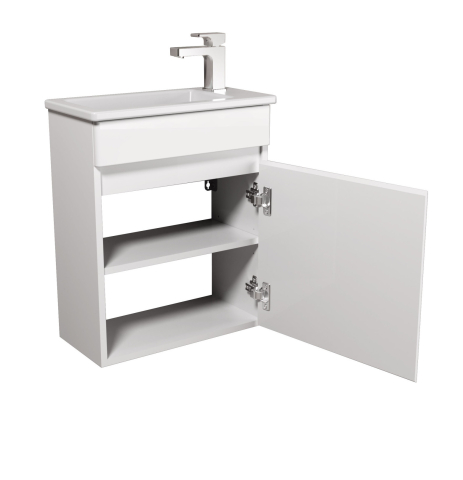 Тумба для ванной с умывальником 50-А (Piccolo 50) Vela Мойдодыр - приглашение в мир, где каждый момент в ванной становится особенным, наполняя пространство светом, легкостью и ощущением заботы о себе. Тумба комплектуется фарфоровым умывальником «Piccolo-50», производитель Турция и имеет одно закрытое отделение с полкой внутри, что позволит удобно разложить всевозможные гели, крема, полотенца и прочие принадлежности, спрятать бытовую химию, которая не должна быть на виду. Корпус изделий выполнен из прочного ДСП Kronospan толщиной 16 мм, фасады из МДФ Kronospan толщиной 16 мм, в благородном белоснежном глянцевом исполнении, словно впускает в ванную дополнительный свет, визуально расширяя пространство и придавая ему свежесть. Дизайн — элегантность в каждой детали: вместо стандартных ручек — изящные фрезерованные выемки, подчеркивающие легкость линий, подвесная установка позволяет создать ощущение воздушности и свободы, а надежные петли Linken System обеспечивают мягкое и бесшумное закрывание. С Vela Мойдодыр ваша ванная превратится в оазис комфорта: место, куда приятно возвращаться за зарядом бодрости утром и спокойствием вечером.