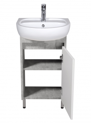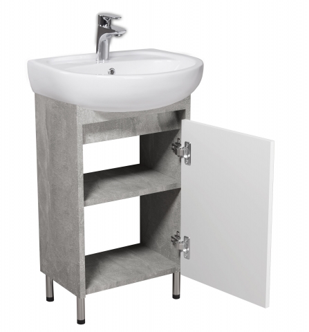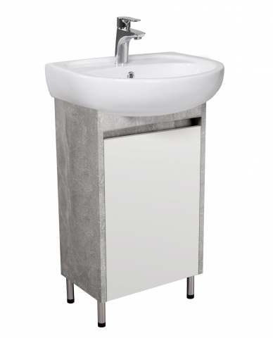 Тумба для ванной с умывальником 50 Nice Loft Мойдодыр воплощает в себе дух современного городского лофта, сочетая в себе простоту и элегантность, превратит ванную комнату в произведение искусства. Тумба комплектуется керамическим умывальником «Solo-50» производитель «Kolo», Польша и имеет одно закрытое отделение с полкой внутри, что позволит удобно разложить всевозможные гели, крема, полотенца и прочие принадлежности, спрятать бытовую химию, которая не должна быть на виду. Характерными особенностями мебели является сочетание элегантности и индустриального характера; светлые тоновые решения, которые создают ощущение простора и чистоты; чистота линий и вниманием к деталям; отсутствие ручек, их роль выполняют фрезерованные на фасаде выемки; напольный монтаж с хромированными ножками; фирменные комплектующие, которые обеспечивают плавное и мягкое закрывание. Мебель Nice Loft Мойдодыр привнесет в интерьер атмосферу творчества и свободы, делая каждое помещение уникальным и неповторимым.