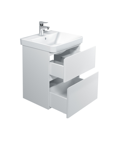 Тумба для ванной с умывальником 50-U Палермо Мойдодыр прекрасно дополнит интерьер ванной комнаты и поможет рационально использовать пространство под раковиной и улучшает эстетичный вид в целом. Тумба комплектуется керамическим умывальником «Vivace-50», производитель Турция и имеет два выдвижных ящика, что позволит удобно разложить всевозможные гели, крема, полотенца и прочие принадлежности, спрятать бытовую химию, которая не должна быть на виду. Корпус изготовлен из ДСП Kronospan толщиной 16 мм, а фасадные части изготовлены из МДФ Kronospan толщиной 19 мм. Поверхности покрыты одним слоем грунта, тремя слоями влагостойкой белой глянцевой краски ультрафиолетового отверждения Iris (Испания). Характерными особенностями мебели Палермо Мойдодыр являются изысканный стиль; глянцевый блеск; гладкая округленность углов; тонкие линии и плавные формы; отсутствие ручек, их роль выполняют фрезерованные на фасаде выемки; два варианта размещения тумб, подвесной и напольный с хромированными ножками; фирменные комплектующие: направляющие скрытого монтажа частичного выдвижения с доводчиком Tandem «Blum» (Австрия), которые обеспечивают плавное и мягкое закрывание. Выбрав комплект Палермо Мойдодыр, Вы наполните ванную комнату изысканностью и функциональностью.