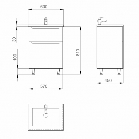Технические характеристики Тумба для ванной с умывальником 60 Space Line Era Sanwerk
