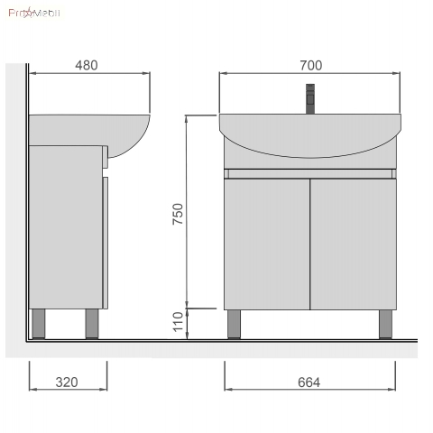 Технические характеристики Тумба для ванной с умывальником 70 Фокус Мойдодыр