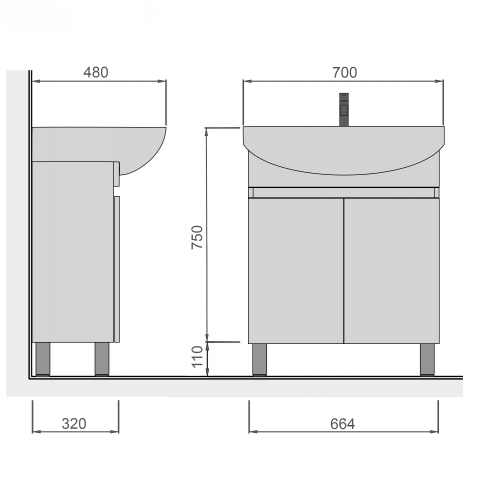 Технические характеристики Тумба для ванной с умывальником 70 Runa Блонди Мойдодыр