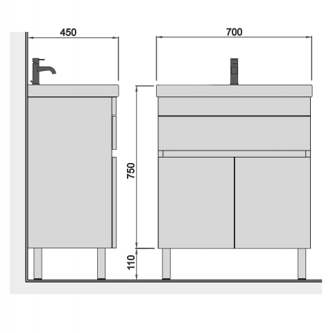 Технические характеристики Тумба для ванной с умывальником 70-U (Cosmo-70) Сity White Мойдодыр
