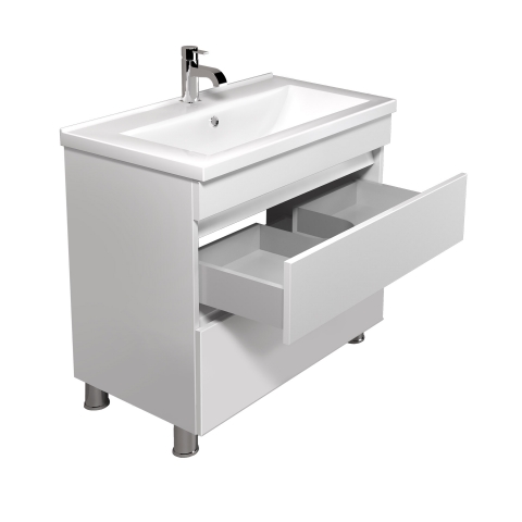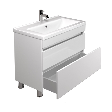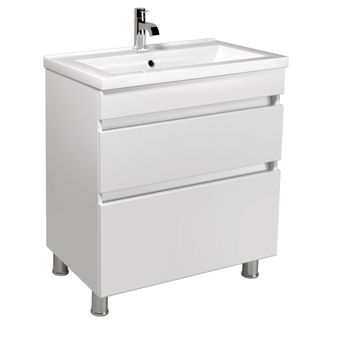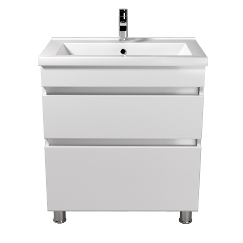 Тумба для ванной с умывальником 70-U Cosmo MoonShine Мойдодыр прекрасно дополнит интерьер ванной комнаты и поможет рационально использовать пространство под раковиной и улучшает эстетичный вид в целом. Тумба комплектуется умывальником из искусственного камня «Cosmopolitan-70», производитель «TM Amidicon», Украина и имеет два выдвижных ящика, которые позволят удобно разложить всевозможные гели, кремы, полотенца и прочие принадлежности, спрятать бытовую химию, которая не должна быть на виду. Главной особенностью серии являются приятный дизайн; отсутствие ручек, их роль выполняют фрезерованные на фасаде выемки; напольный монтаж с хромированными ножками; фирменные комплектующие: направляющие Hettich, которые обеспечивают плавное и мягкое закрывание. Благодаря мебели MoonShine Мойдодыр Вы можете спроектировать ванную комнату без всяких усилий!
