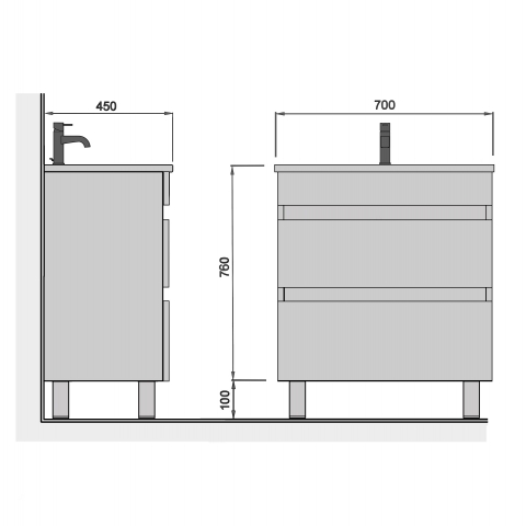 Технические характеристики Тумба для ванной с умывальником 70-U Cosmo MoonShine Мойдодыр