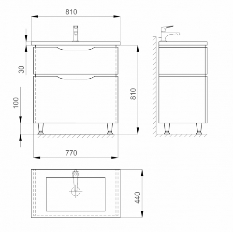 Технические характеристики Тумба для ванной с умывальником 80 Idea Alessa белая Sanwerk