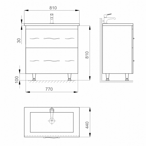 Технические характеристики Тумба для ванной с умывальником 80 New Line Mindal Sanwerk