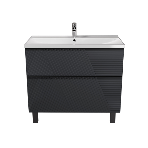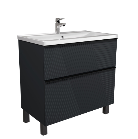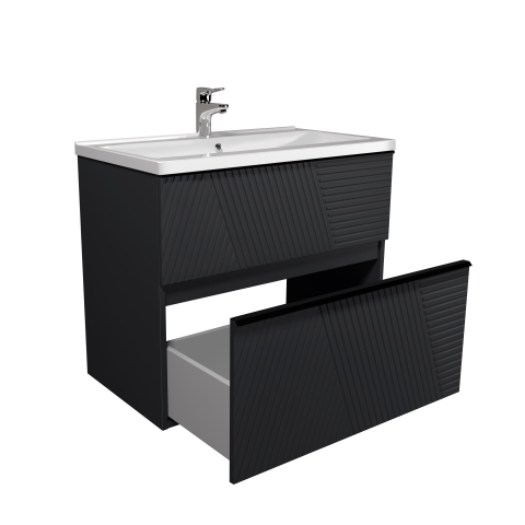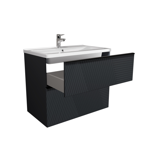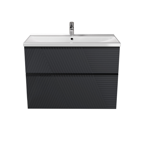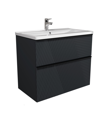Тумба для ванной с умывальником 80-U Debut Rome Мойдодыр пленяет с первого взгляда, заставляя забыть о рутине и перенестись в мир эстетики, изысканности и настоящего комфорта, превратит вашу ванную комнату в стильное и функциональное пространство. Тумба комплектуется умывальником из искусственного камня «Debut-80», производитель «TM Amidicon», Украина и имеет два выдвижных ящика, которые позволяют удобно разложить всевозможные гели, кремы, полотенца и другие вещи, спрятать бытовую химию, скрывая их от окружающих. Тумба выделяется современным минималистичным дизайном с графитовой палитрой, элегантными линиями и оригинальной фрезеровкой фасадов, придающей текстуру, едва заметными ручками, интегрированными в край фасада, черного цвета, универсальным монтажем позволяет выбрать между напольным и подвесным вариантом, фирменными направляющими. Выбирая Rome Мойдодыр, вы выбираете уникальную атмосферу уюта, гармонии и роскоши, которая станет важной частью вашей жизни.