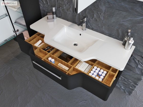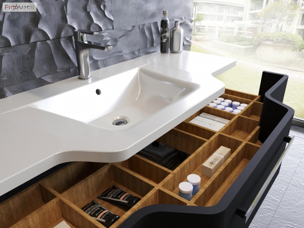 тумба имеет два выдвижных ящичка со встроенными органайзерами |