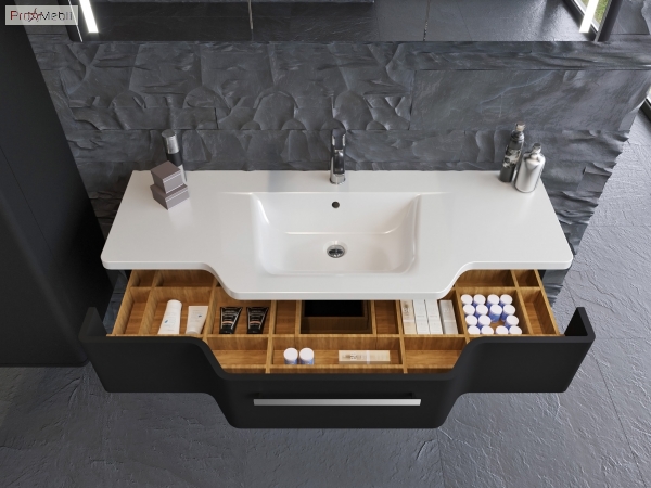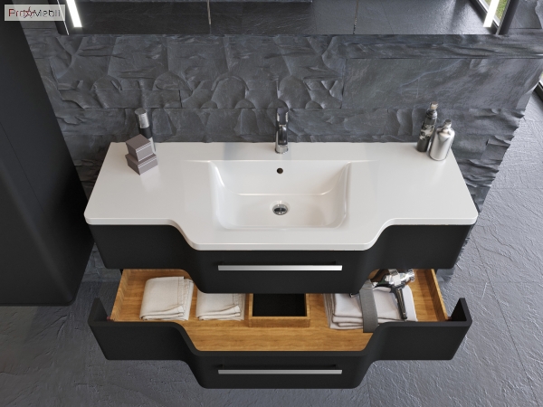 Тумба навесная с умывальником Lv-128 Levanto Botticelli прекрасно дополнит интерьер ванной комнаты. Тумба комплектуется умывальником из искусственного камня «Levanto-128», производитель «Укркомпозит», Украина. Стильная тумба с умывальником имеет два выдвижных ящичка со встроенными органайзерами. В конструкции предусмотрен общепринятый и гармонизированный со всеми европейскими стандартами подвод и отвод воды. Корпус и фасадные части изготовлены из МДФ толщиной 19 мм, ящик и наполнение изготовлено из древесины. Поверхность мебели обработана внутри изделия – специальным полиуретановым лаком; снаружи изделия – эмалями с последующим нанесением эластичного декоративного покрытия – «черный тактус», которое на ощупь напоминает каучук. Главной особенностью серии Levanto Ботичелли являются оригинальное матовое покрытие, которое создает эффект мягкости и уюта в помещении; плавные формы и округлость линий придают изумительное чувство стиля; функциональное наполнение и непревзойденный дизайн; ручки из нержавеющей стали прямоугольной формы; подвесной монтаж - крепление к стене; качественная и надежная фурнитура: скрытые направляющие с функцией самодотягивания полного выдвижения «InnoTech», производитель «Hettich», которые обеспечивают плавное и мягкое закрывание. Мебель для ванной Levanto Botticelli – это смелое дизайнерское решение, настоящее воплощение совершенства станет изысканным дополнением вашей ванной комнаты.