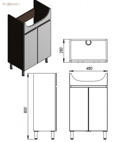 тумба имеет две дверцы, внутреннее пространство разделено полкой, в конструкции предусмотрено отверстие для подведения слива по европейским стандартам |