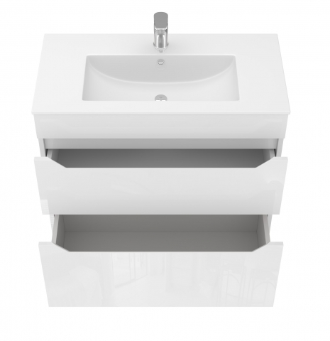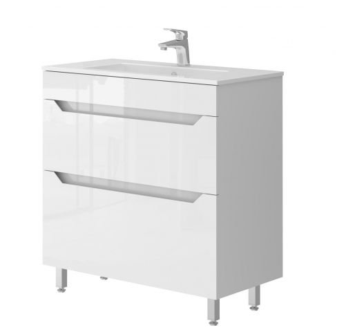 Стильная и современная тумба для ванной с умывальником N-80 белая Neo Ювента, впечатляющая своим легким и современным дизайном, дополнит интерьер ванной комнаты и поможет рационально использовать пространство под раковиной и улучшает эстетический вид в целом. Тумба комплектуется керамическим умывальником "Practico-80", производитель "Sanovit", Турция и имеет два выдвижных ящика, высота верхнего ящика 25 см, высота нижнего ящика 34 см, что позволяет удобно разложить всевозможные гели, крема, полотенца и другие вещи, спрятать бытовую химию, которая не должна быть на виду. Характерными особенностями мебели является оригинальный дизайн и функциональность; безупречность форм; минимальное декоративное оформление; сочетание белого корпуса и белых глянцевых фасадов; отсутствие ручек, их роль выполняют фрезерованные на фасаде выемки; напольный монтаж, устанавливается на четыре хромированные ножки (высота ножек 10 см), а также есть дополнительное крепление к стене; направляющие с функцией самодотягивания частичного выдвижения, производитель "Hettich", что обеспечивает плавное и мягкое закрывание. Мебель Neo Juventa позволит придать помещению неповторимую атмосферу, а Вы сможете с самого утра подарить себе хорошее настроение.