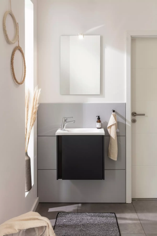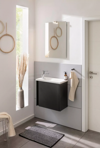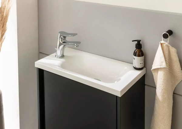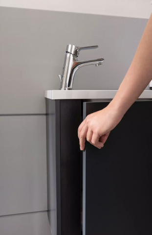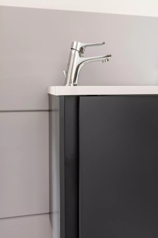 Тумба для ванной с умывальником Susie-50 антрацит Ювента – воплощение оригинальности и современного дизайна, для обустройства ванной комнаты. Тумба поможет рационально использовать пространство под раковиной и улучшает эстетичный вид в целом. Подвесная тумба комплектуется умывальником из искусственного камня «Adamant - 50», производителем «Укркомпозит», Украина и имеет одно закрытое отделение, где удобно разложить всевозможные гели, кремы, полотенца и другие вещи, спрятать бытовую химию, скрывая их от окружающих. Вы можете укомплектовать тумбу сифоном «Нептун» Н0410, который идеально подходит для отвода воды в соответствии с особенностями конструкции тумбы. Тумба привлекает внимание лаконичностью форм; четкими прямыми линиями; минимальным декоративным оформлением; отсутствием ручек их функцию выполняют выфрезерованные на фасадах выемки; подвесным монтажом – крепление к стене; накладными петлями, производитель «GTV», обеспечивающий плавное и мягкое закрывание. Susie Ювента прекрасно впишется как в современные, так и в классические интерьеры ванных комнат.