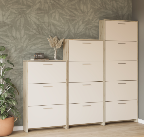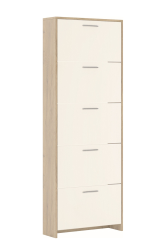Тумба для обуви 5Д Рене Світ Меблів в прихожую – незаменимая спутница интерьера любой квартиры. Тумба для обуви содержит пять закрытых отделения, с откидной дверцей, что позволяет разместить большое количество сапог, туфель, босоножек и другой обуви. Корпус и фасадные части изготовлены из качественного ламинированного ДСП толщиной 16 мм в сочетании цветов "дуб белый / сатин". Тумба Рене Світ Меблів – отличный выбор для людей, которые ищут предмет мебели, сочетающий в себе функциональность, эстетику и удобство.