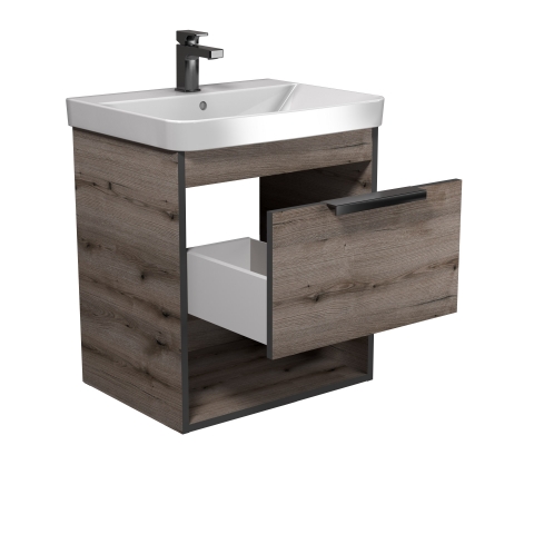 Современная и стильная тумба для ванной с умывальником 60-A из коллекции Denver Мойдодыр станет удобным местом для хранения необходимых в ванной комнате принадлежностей, придаст ощущение чистоты и безупречности в современный интерьер ванной комнаты. Тумба комплектуется керамическим умывальником «Vivace-60», производитель Турция и имеет один выдвижной ящик и открытую полочку. Характерными особенностями тумбы являются необычный дизайн, сочетающий в себе элементы лофта и индустриального стиля, придающие современный и эксклюзивный вид; текстура древесины "дуб эвок"; затемненная кромка и металлические элементы: накладные ручки, черного цвета, придают эффектную контрастную гамму; а фирменные комплектующие Hettich обеспечивают плавное и мягкое закрывание. Коллекция Denver Мойдодыр подойдет для тех, кто хочет создать современный и нестандартный дизайн в ванной комнате, сочетающий в себе функциональность и стильный вид.
