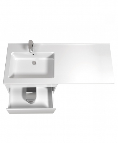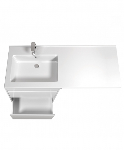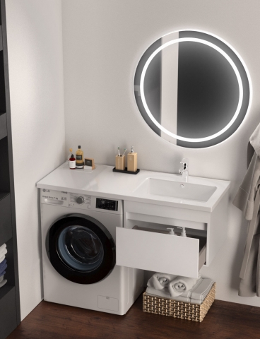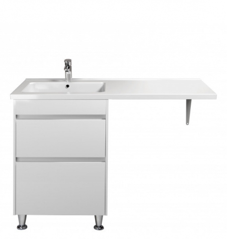 Тумба для ванной с умывальником 60-U-120L Rodeo Wing Мойдодыр прекрасно дополнит интерьер ванной комнаты и поможет рационально использовать пространство под раковиной и улучшает эстетичный вид в целом. Тумба комплектуется умывальником из искусственного камня «Rodeo-120L», производитель «TM Amidicon», Украина и имеет один выдвижной ящик, который позволит удобно разложить всевозможные гели, кремы, полотенца и прочие принадлежности, спрятать бытовую химию, которая не должна быть на виду и место для стиральной машины. Характерными особенностями мебели это лаконичность и функциональность; безупречность форм; минимальное декоративное оформление; интересное дизайнерское решение: отсутствие ручек, их роль выполняют фрезерованные на фасаде выемки; фирменные комплектующие: направляющие производства «Hettich», обеспечивающие плавное и мягкое закрывание. Wing Мойдодыр отлично дополнят интерьер вашей ванной комнаты.