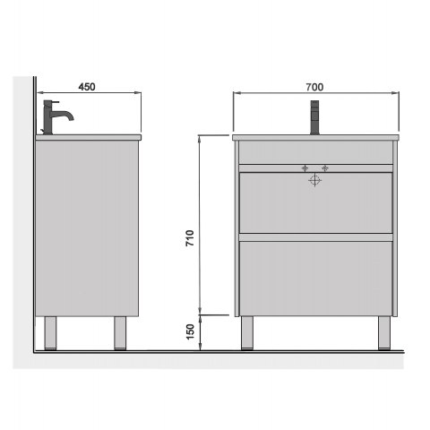 Технические характеристики Тумба для ванной с умывальником 70-U Polo Loft Мойдодыр