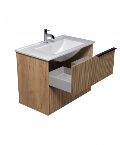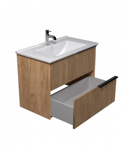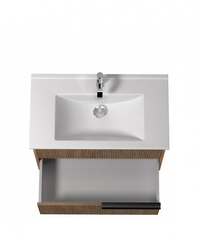 Тумба для ванной с умывальником 80-A Grace Мойдодыр - это настоящее воплощение великолепия и таинственности, где каждый элемент словно хранит в себе тайну и уникальную историю написанную природой, особенную глубину и многогранность, придающие интерьеру ванной комнаты особую атмосферу уюта и загадочности. Тумба комплектуется керамическим умывальником «Su-80», производитель «Creavit», Турция и имеет два выдвижных ящика, что позволит удобно разложить всевозможные гели, крема, полотенца и другие вещи, спрятать бытовую химию, скрывая их от окружающих. Характерными особенностями мебели являются изысканный и роскошный вид; искусно обработанные фасады с рифлением, которые особым образом подчеркивают элегантный внешний вид; черные ручки, словно акценты в симфонии дизайна, добавляют изысканности и современного шарма; подвесной монтаж - подарит ощущение легкости и воздушности, позволяя вам использовать пространство под, по своему усмотрению; фирменные комплектующие. Мебель Grace Мойдодыр - это не просто часть интерьера, это маленький шедевр, способный преобразить ванную комнату в личное пространство релаксации и вдохновения.