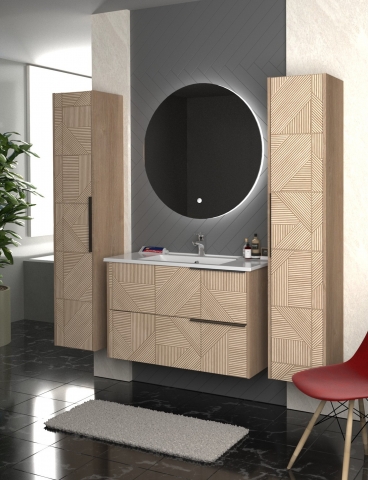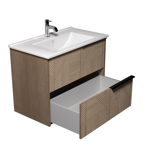 Элегантная тумба для ванной с умывальником 80-A Illusion Мойдодыр, несет в себе частицу красоты и функциональности, создавая идеальное пространство для начала и завершения вашего дня. Тумба комплектуется керамическим умывальником «Su-80», производитель «Creavit», Турция и имеет два выдвижных ящика, что позволит удобно разложить всевозможные гели, крема, полотенца и другие вещи, спрятать бытовую химию, скрывая их от окружающих. Характерными особенностями мебели являются воплощение элегантности и функциональности; флюктуированная деревянная текстура поражающая стильным узором, создавая трехмерный вид; натуральный древесный оттенок; черные ручки, словно акценты в симфонии дизайна, добавляют изысканности и современного шарма; подвесной монтаж - подарит ощущение легкости и воздушности, позволяя вам использовать пространство под, по своему усмотрению; фирменные комплектующие. Illusion Мойдодыр - это не просто мебель, это искусство, которое преобразит вашу ванную комнату и каждый день будет напоминать о красоте простых вещей.