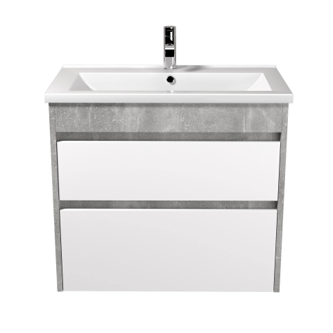 Идеальная тумба для ванной с умывальником 80-U Polo Loft Мойдодыр для ценителей таких стилей как скандинавский, лофт и хай-тек прекрасно дополнит интерьер ванной комнаты и поможет рационально использовать пространство под раковиной и улучшает эстетичный вид в целом. Тумба комплектуется умывальником из искусственного камня «Cosmopolitan-80», производитель «TM Amidicon», Украина и имеет два выдвижных ящика, что позволит удобно разложить всевозможные гели, кремы, полотенца и прочие принадлежности, спрятать бытовую химию, которая не должна быть на виду. Корпус изготавливается из влагостойкого ламинированного ДСП Kronospan (Польша) толщиной 18 мм с фасадами из ДСП Kronospan (Польша) толщиной 16 мм покрытыми влагостойкой краской ультрафиолетового твердения Iris (Испания), что обеспечивает устойчивость к воздействию влаги и долговечность, в современном цветовом сочетании бетон / белый глянцевый. Главной особенностью серии Polo Loft Мойдодыр является актуальный дизайн в простой форме; необычные и функциональные эстетические решения и максимальное удобство использования; отсутствие ручек, их роль выполняют фрезерованные на фасаде выемки; универсальное использование - возможен как напольный, так и подвесной монтаж; фирменные комплектующие: направляющие Hettich с плавным закрыванием, обеспечивающие плавное и мягкое закрывание. Поло Лофт Мойдодыр отлично впишется в интерьер, делая вашу ванную комнату элегантной и функциональной.
