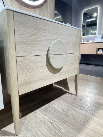 Тумба для ванной с умывальником подвесная Ducie 1200 Fancy Marble элегантное сочетание природных материалов и стильного дизайна, которая органично дополнит любой интерьер. Выполненная из натурального шпона с текстурой древесины, она привнесет в пространство тепло и элегантность. Цвет дерева и структура материала создают атмосферу уюта и натуральности, делая ванную комнату не только функциональной, но и визуально привлекательной. Тумба комплектуется умывальником из литого искусственного камня модели Morado 1200 и оснащена двумя выдвижными ящиками, которые обеспечивают удобное хранение всех необходимых вещей. Ручки-кольца, выполненные из двух частей, акцентируют внимание на продуманной деталировке, добавляя декоративный штрих и завершенность образу, а деревянные ножки придают дополнительную легкость и воздушность конструкции. Тумба Ducie Fancy Marble сочетает в себе универсальность, функциональность и стиль, делая вашу ванную комнату не только удобной, но и по-настоящему роскошной.