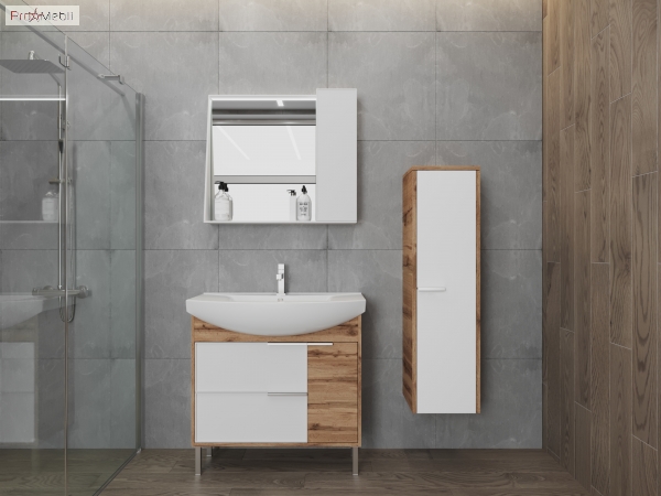 Тумба для ванной с умывальником Sf-85 Sofia Ювента прекрасно дополнит интерьер ванной комнаты и поможет рационально использовать пространство под раковиной и улучшает эстетичный вид в целом. Тумба комплектуется керамическим умывальником «Zenon-85», производитель «Sanovit», Турция и имеет два выдвижных ящика из ДСП белого цвета толщиной 16 мм, а также одно закрытое отделение с полкой внутри, это позволит удобно разложить всевозможные гели, крема, полотенца и прочие принадлежности, спрятать бытовую химию, которая не должна быть на виду. Вы можете укомплектовать тумбу сифоном «Нептун» Н0410, который идеально подходит для отвода воды в соответствии с особенностями конструкции тумбы. Корпус и фасадные части изделий изготовлены из ламинированного ДСП толщиной 16 мм в комбинации цветов дуб вотан/белый матовый. Характерными особенностями мебели Sofia Ювента являются сочетание классического и современного дизайна; минимальное декоративное оформление; спокойное цветовое решение; декоративный кант на фасадных частях толщиной 6 мм; продолговатые металлические хромированные ручки и хромированные ножки; направляющие с функцией самодотягивания частичного выдвижения, производитель «Hettich» и самодоводящиеся петли, которые обеспечивают плавное и мягкое закрывание. Серия комплектуется зеркальными шкафами «Manhattan Ювента». Мебель Sofia Juventa создаст сдержанный и одновременно необычный дизайн вашей ванной комнаты.