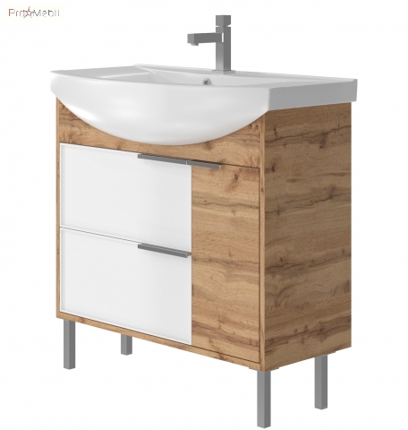 Описание Тумба для ванной с умывальником Sf-85 дуб вотан Sofia Ювента